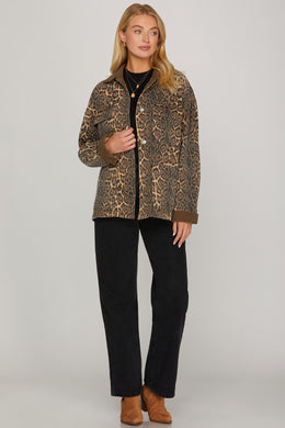 LEOPARD PRINT WASHED WORKER BARN JACKET WITH POCKETS,